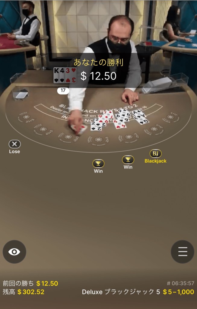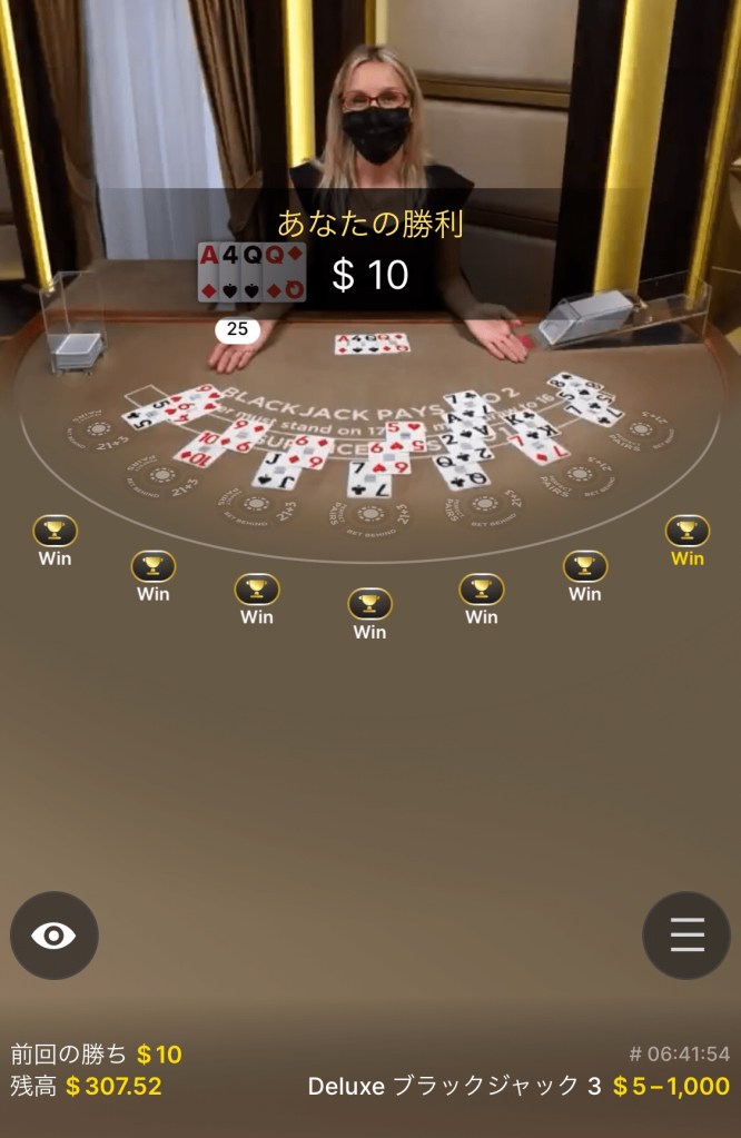 一回負けてからブラックジャック😍この調子で行きましょ!!と思ったら、、、